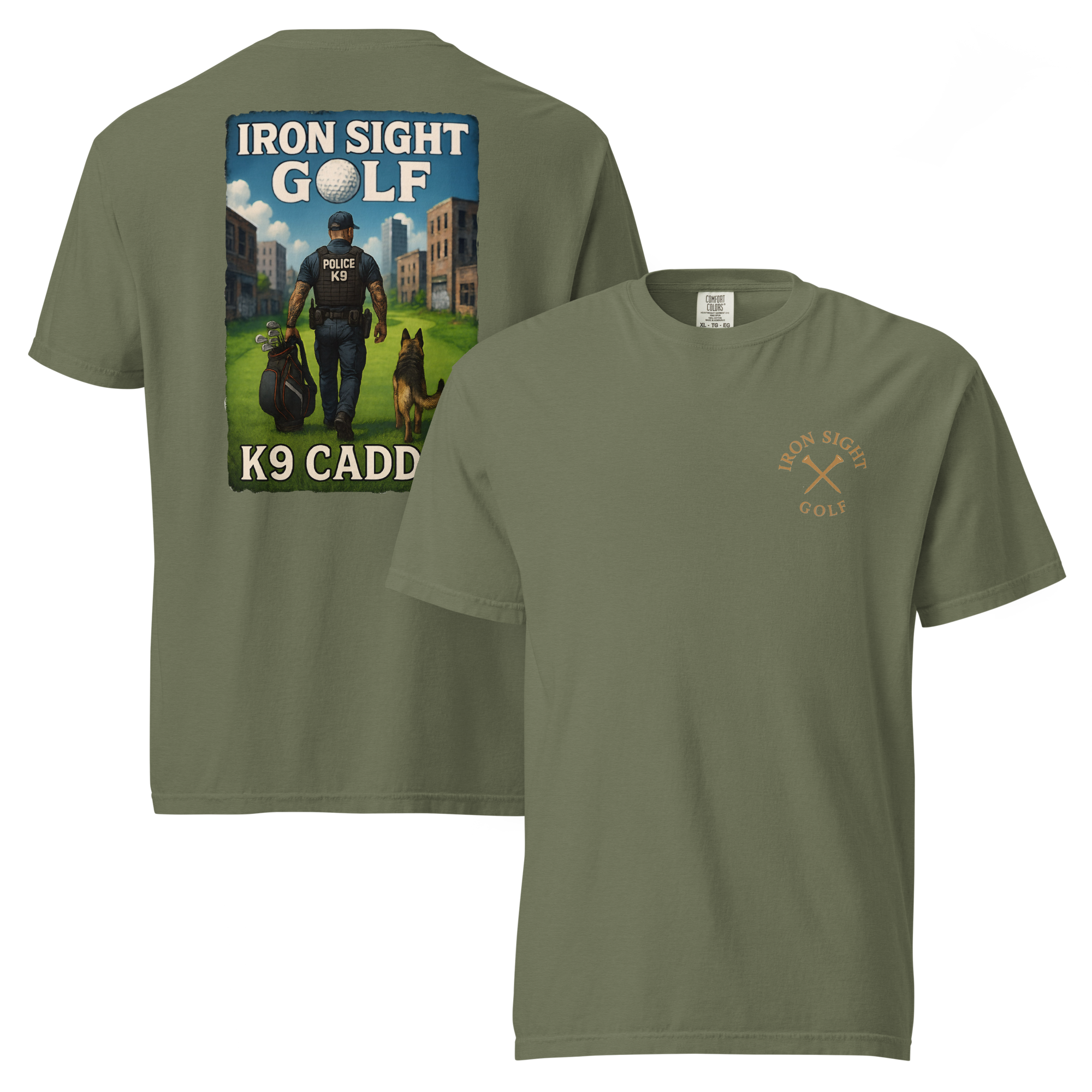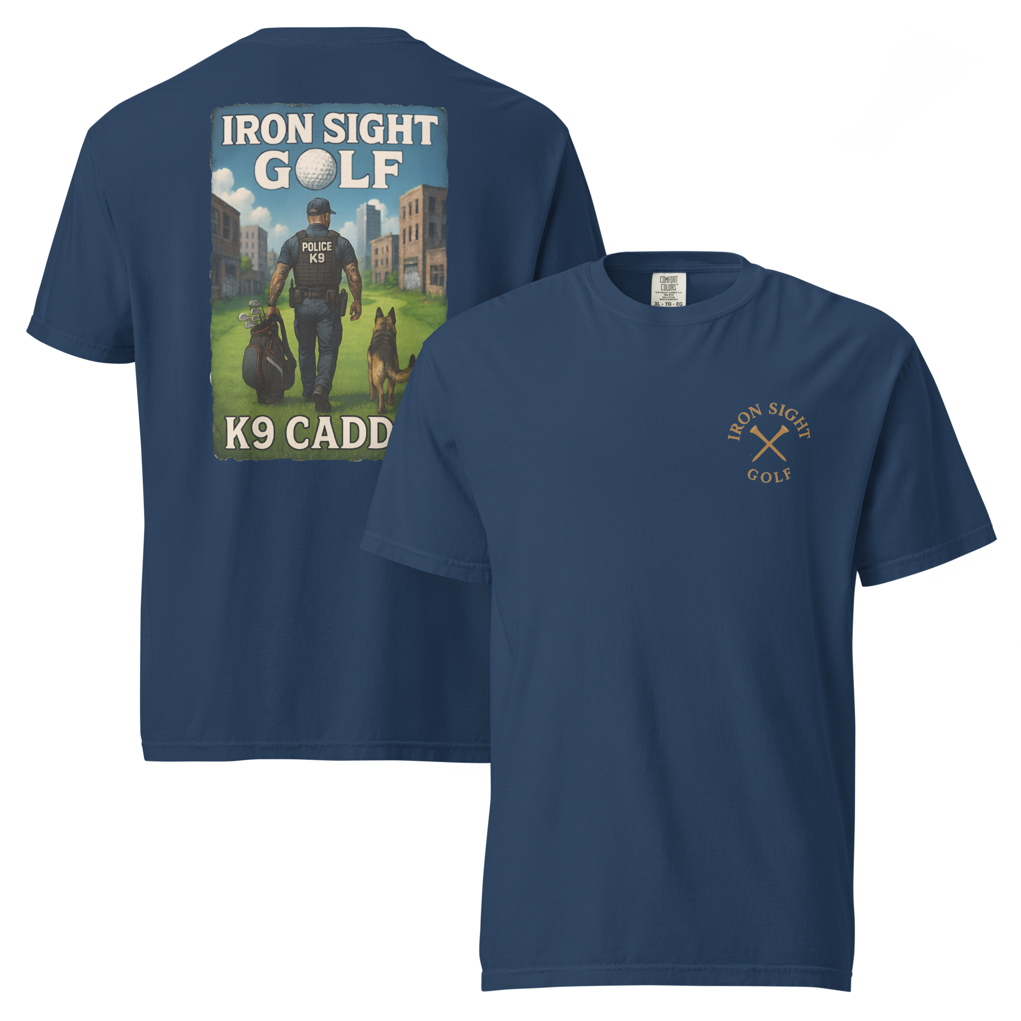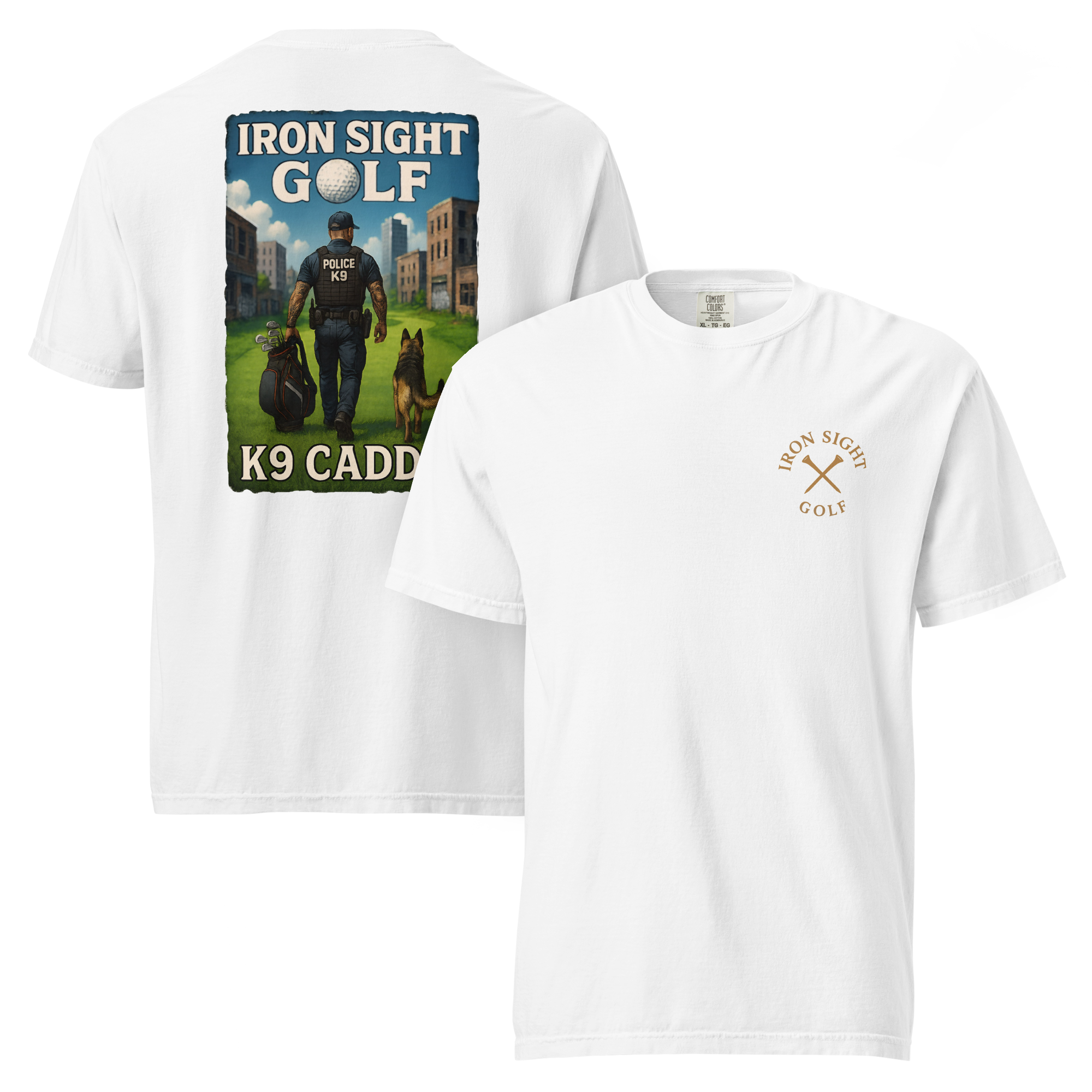 Step onto the fairway with strength, loyalty, and honor. The Police K9 Tee pays tribute to the unbreakable bond between officers and their four-legged partners. This design depicts a police officer walking alongside his K9 down a golf fairway, set against the backdrop of a rugged city urban environment. Blending duty and sport, it’s a reminder that teamwork, trust, and dedication extend far beyond the streets.