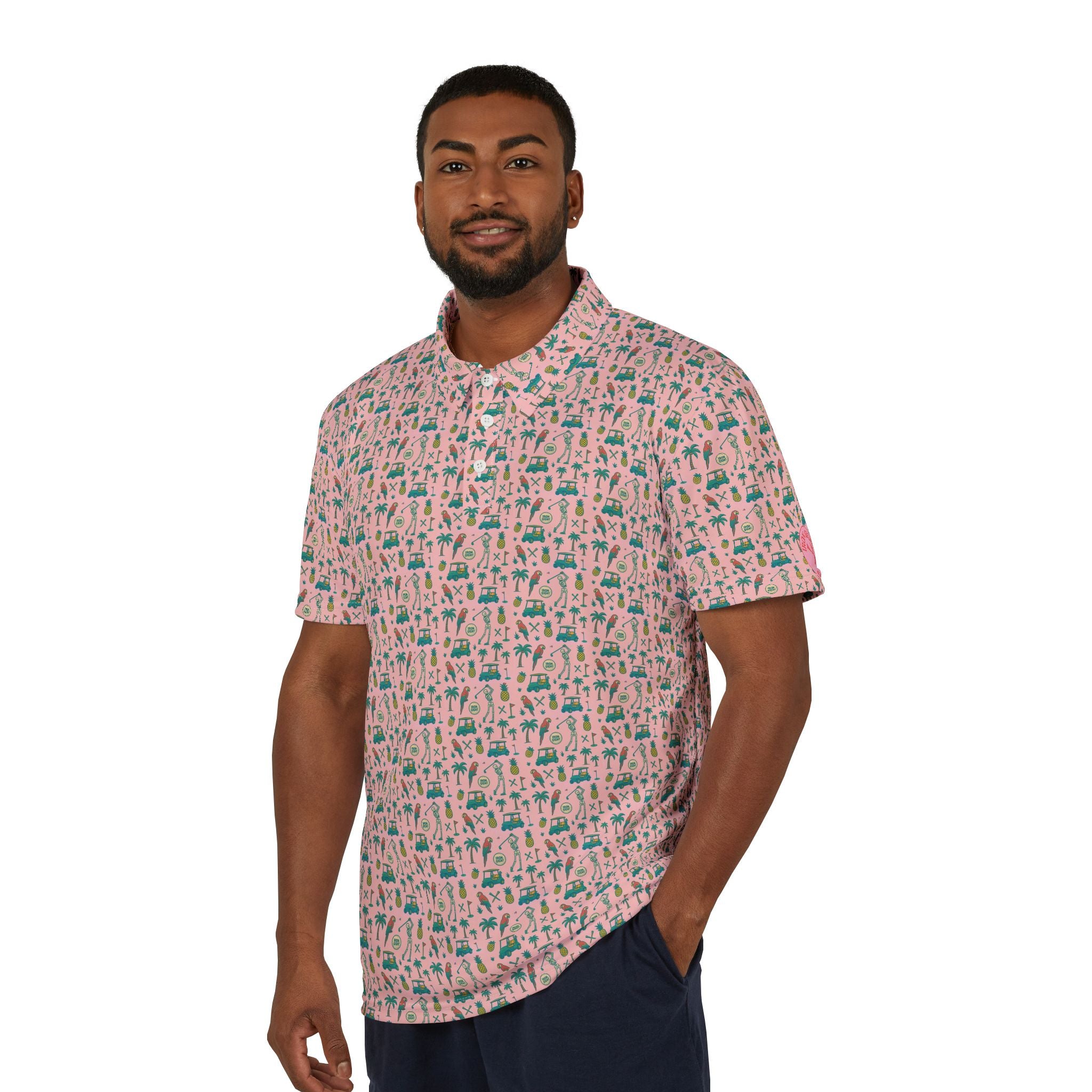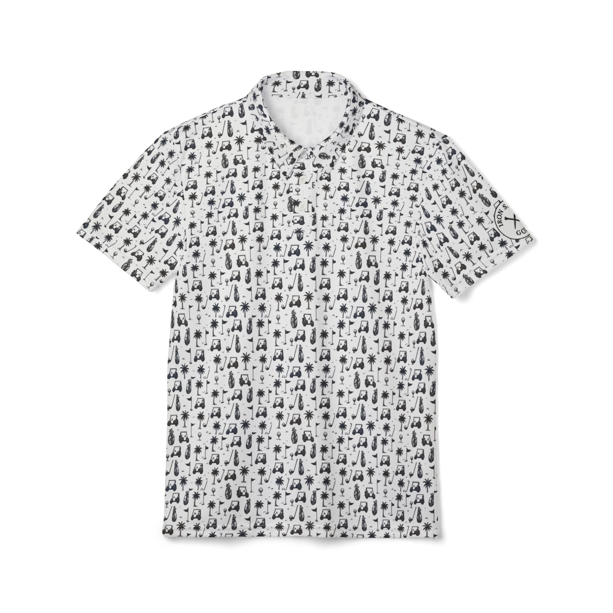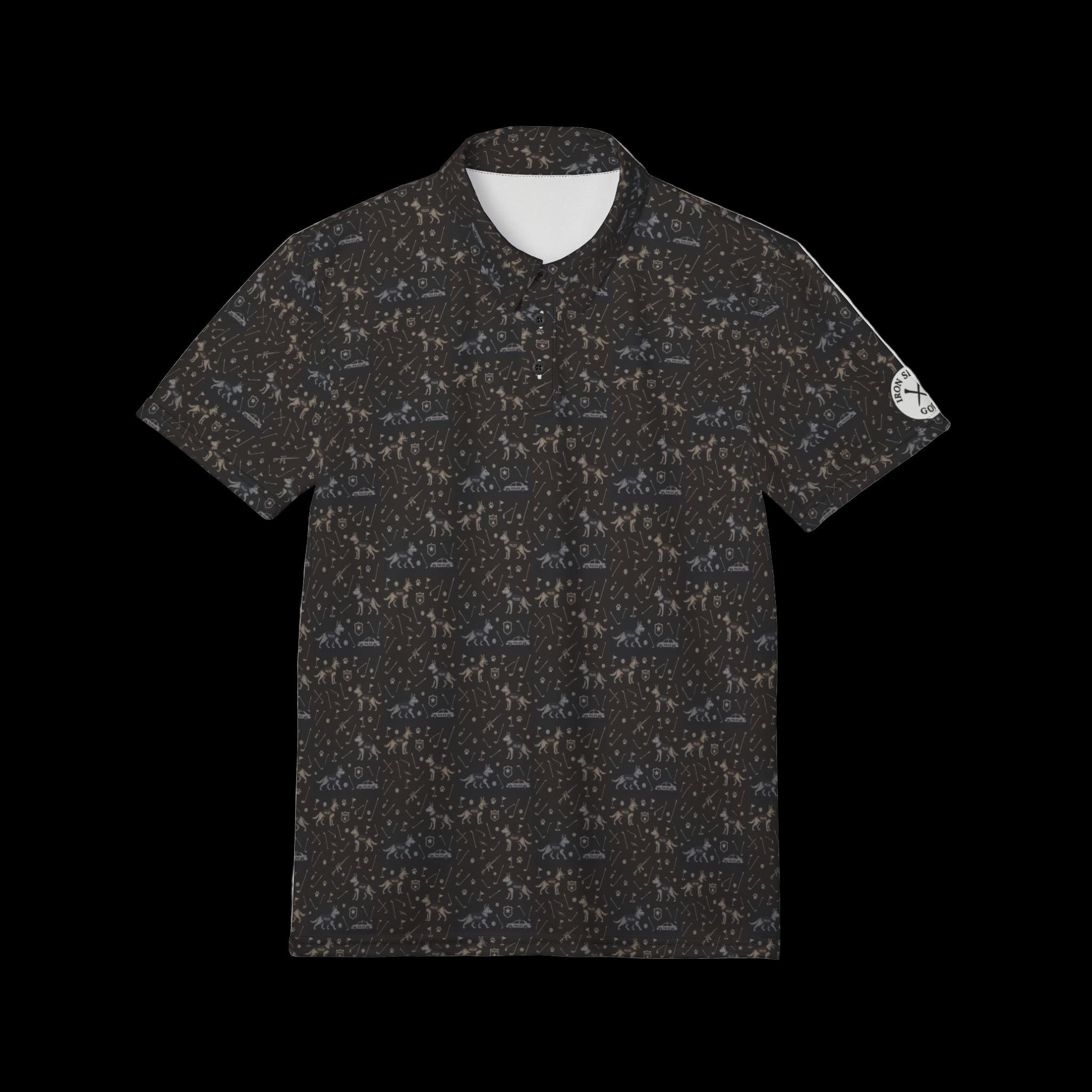 Blending bold design with battlefield precision, the Iron Sight Golf Polo Collection fuses tactical imagery, iconic golf motifs, and a touch of tropical flair into every stitch. Each polo tells a story—of honor, discipline, and the love of the game—through carefully crafted patterns that pay tribute to law enforcement K9 units, classic golf icons, and relaxed island vibes.