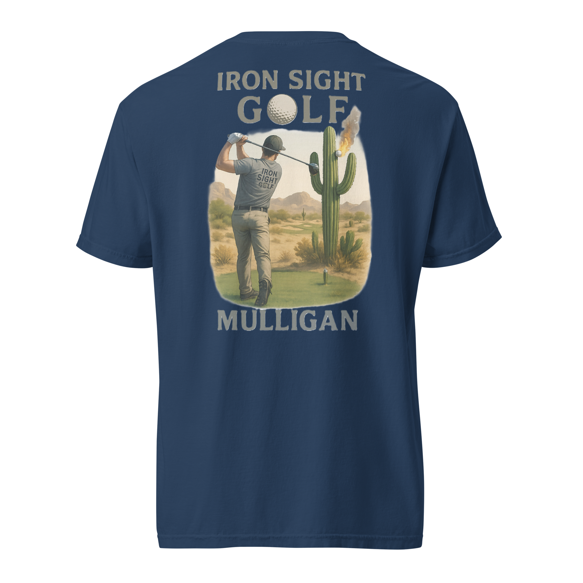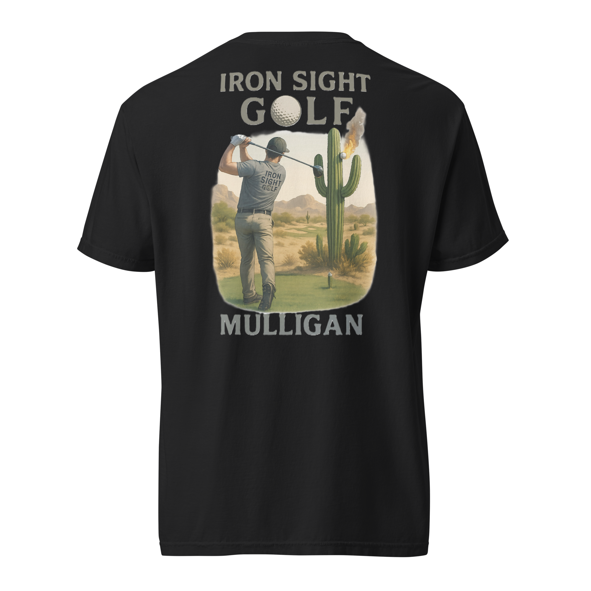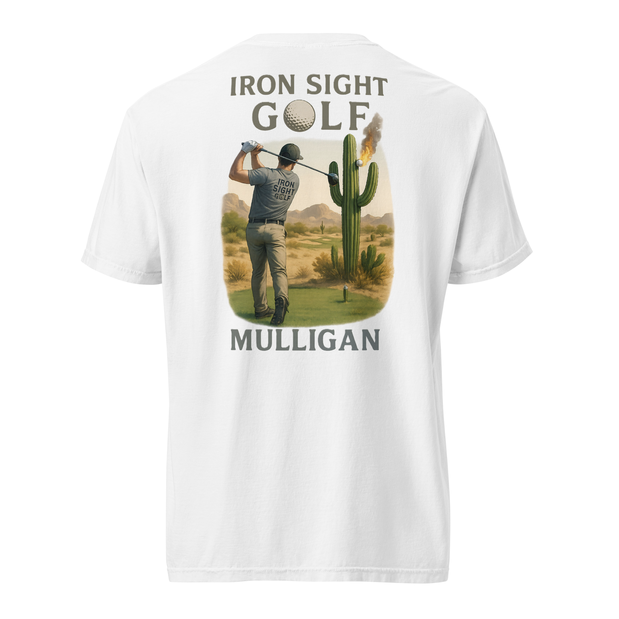 Celebrate the second chance every golfer hopes for with the Iron Sight Golf “Mulligan” tee. Featuring a high-definition design of a golfer launching his shot straight into a cactus, this shirt captures the humor and reality of the game—sometimes you just have to take the shot over. Built with durable fabric and a structured fit, it delivers lasting comfort and a confident look whether you’re on the course or relaxing after the round.