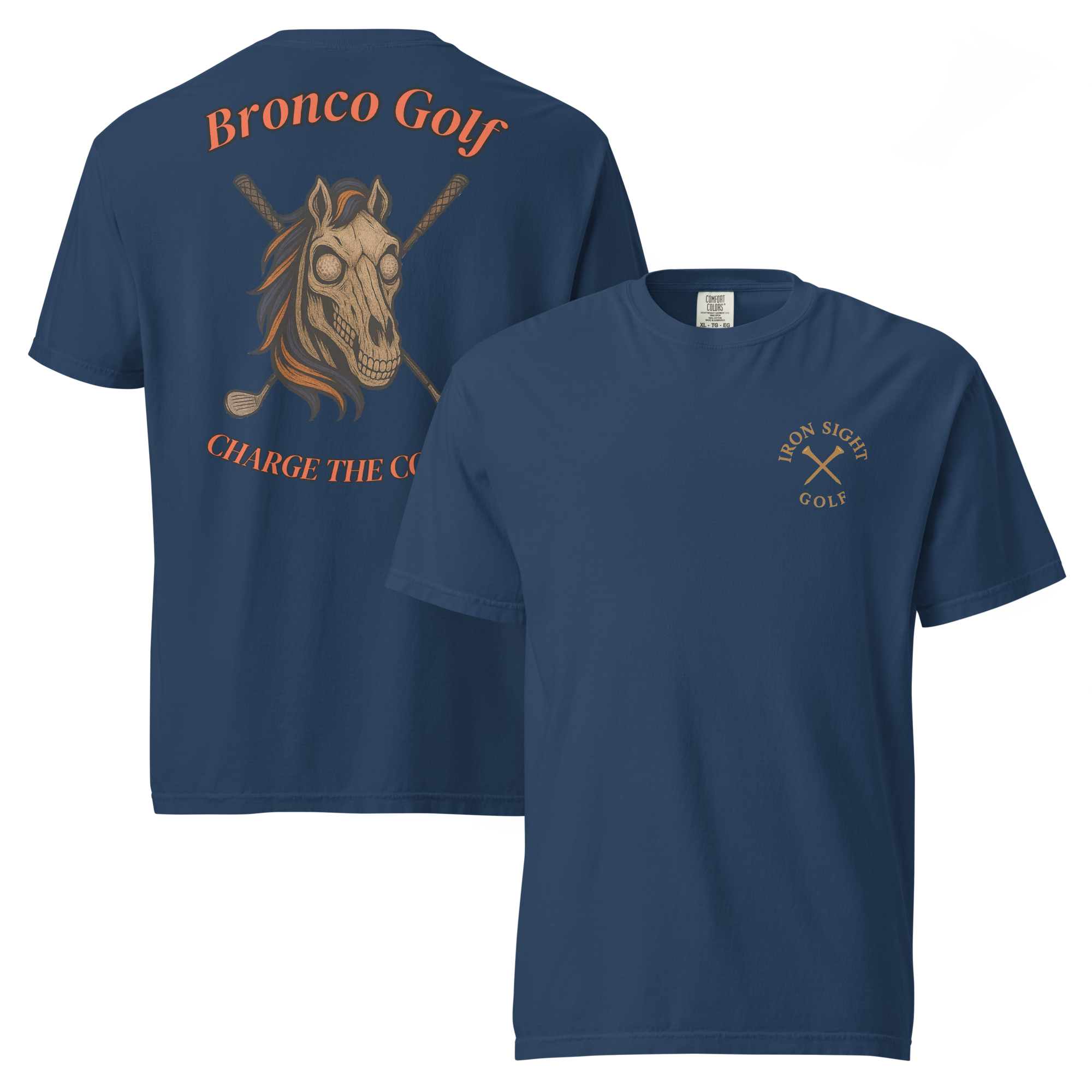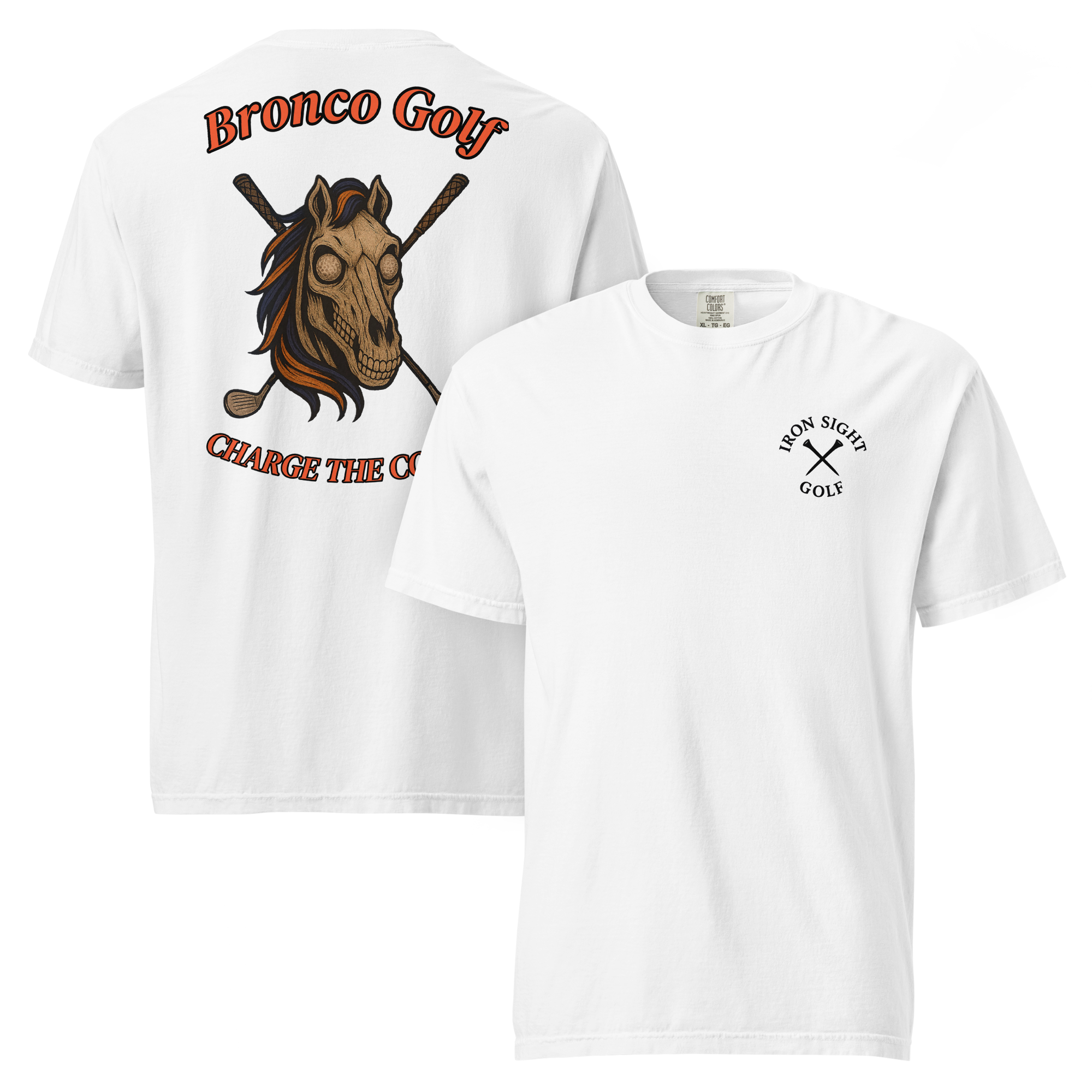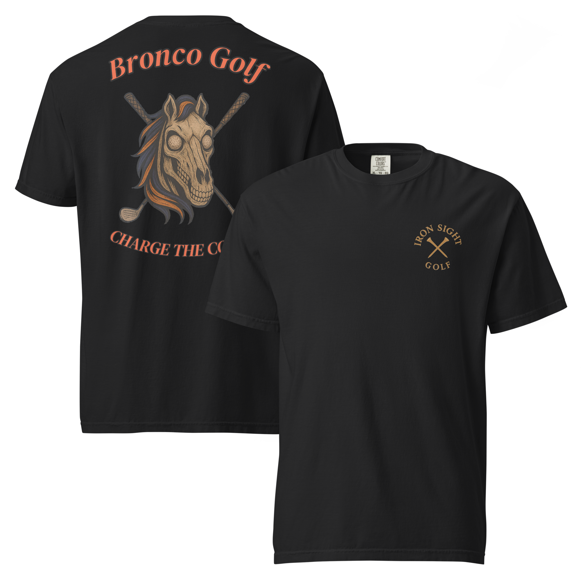 The Bronco Golf Tee embodies raw power and fearless energy on the fairway. Featuring a skeleton horse with piercing golf ball eyes and a wild orange-and-purple mane, this bold design reminds golfers to play with intensity and courage. With the rallying cry “Charge the Course”, this tee is a perfect fit for players who attack every round with relentless drive and determination.