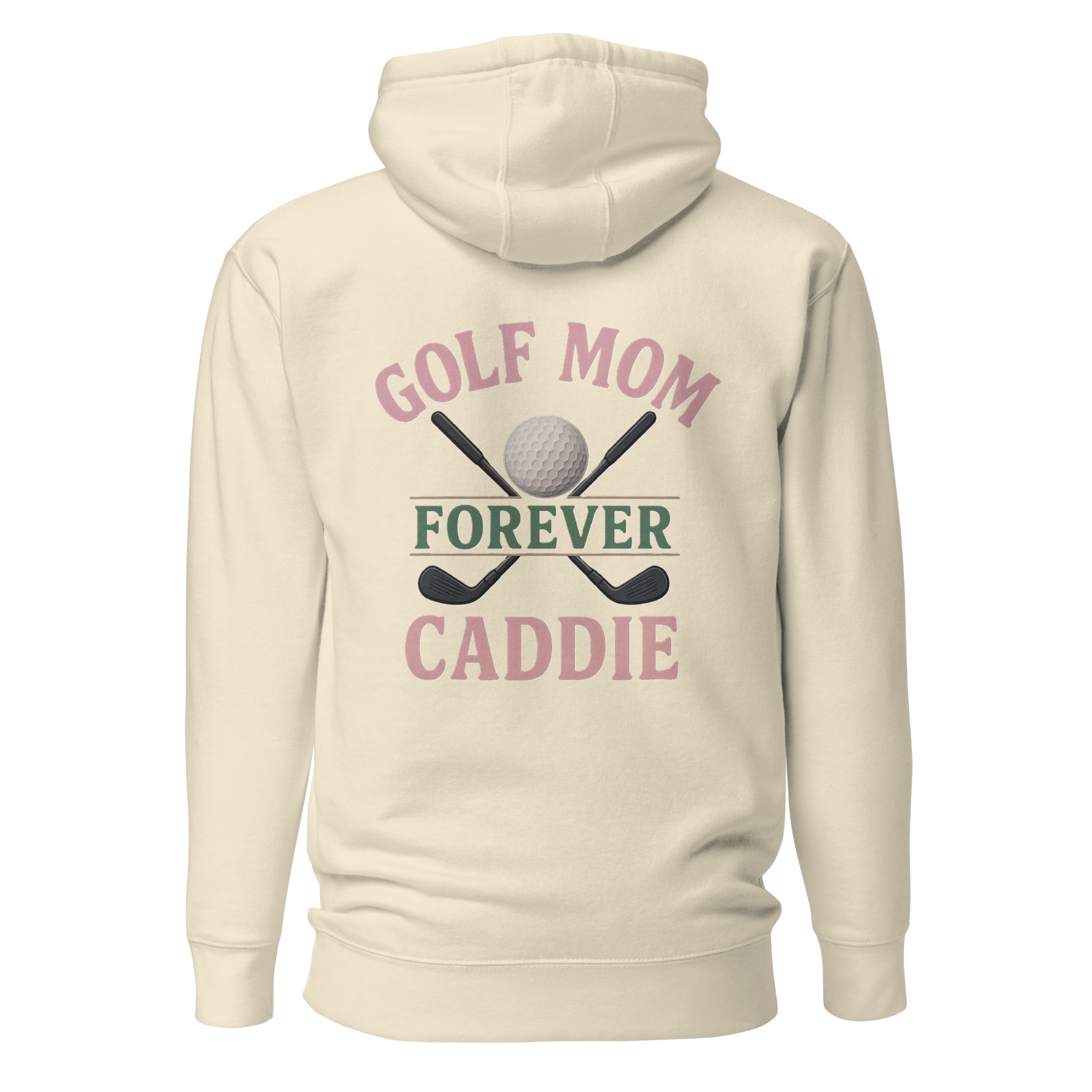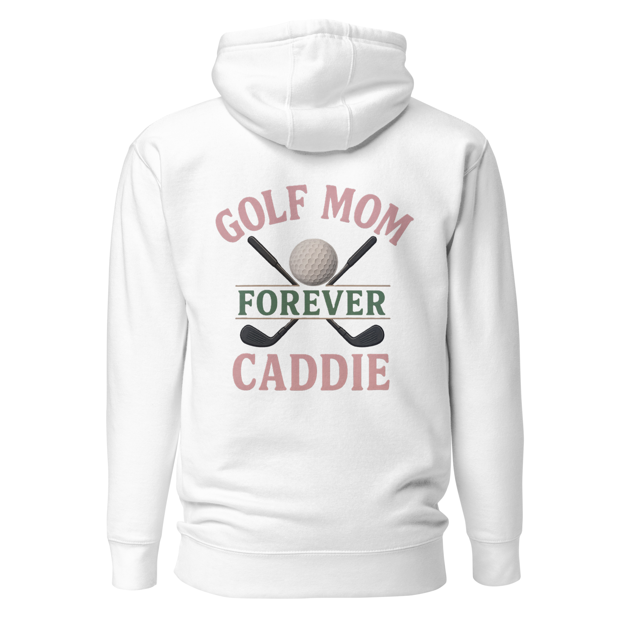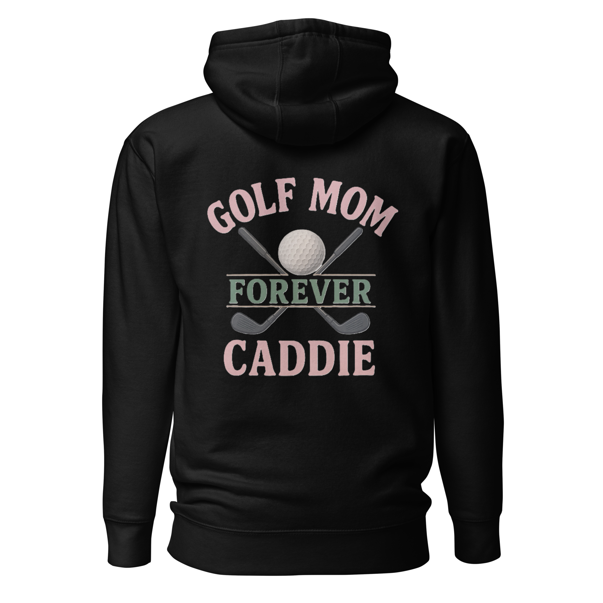 Celebrate the heart and soul of the fairway with the Golf Mom Forever Caddie Hoodie. Designed for the moms who always show up, carry the load, and cheer the loudest, this hoodie features a bold and elegant graphic with crossed golf clubs, a detailed golf ball, and the heartfelt phrase “Golf Mom Forever Caddie.” Feminine hues of soft pink and champagne blend with hunter green and black accents to strike the perfect balance of style and strength. Comfortable, durable, and stylish, this hoodie is a tribute to the moms who never miss a round—or a moment.