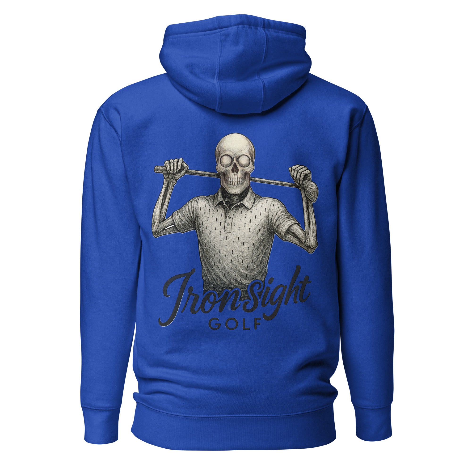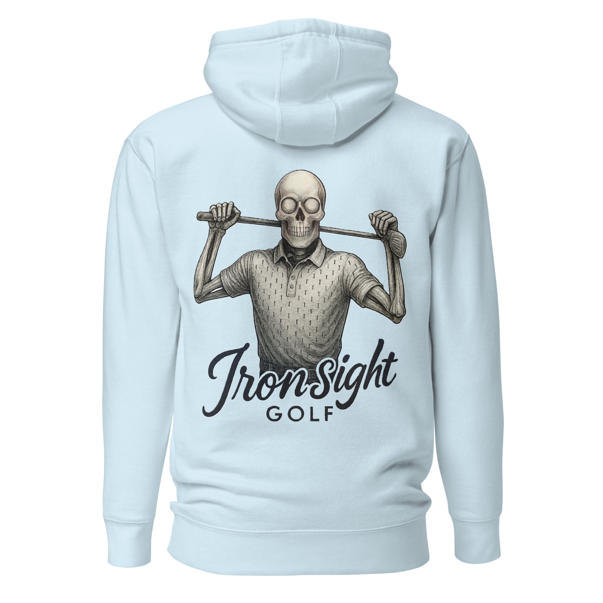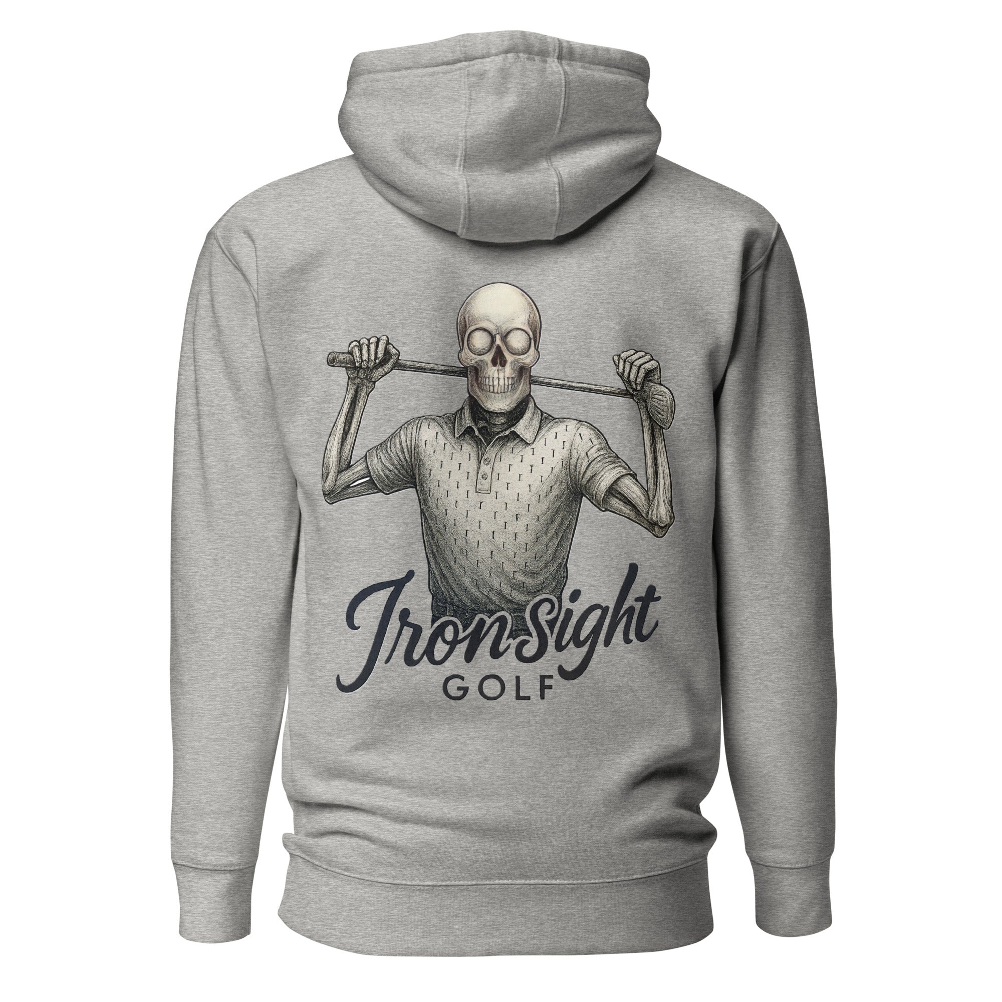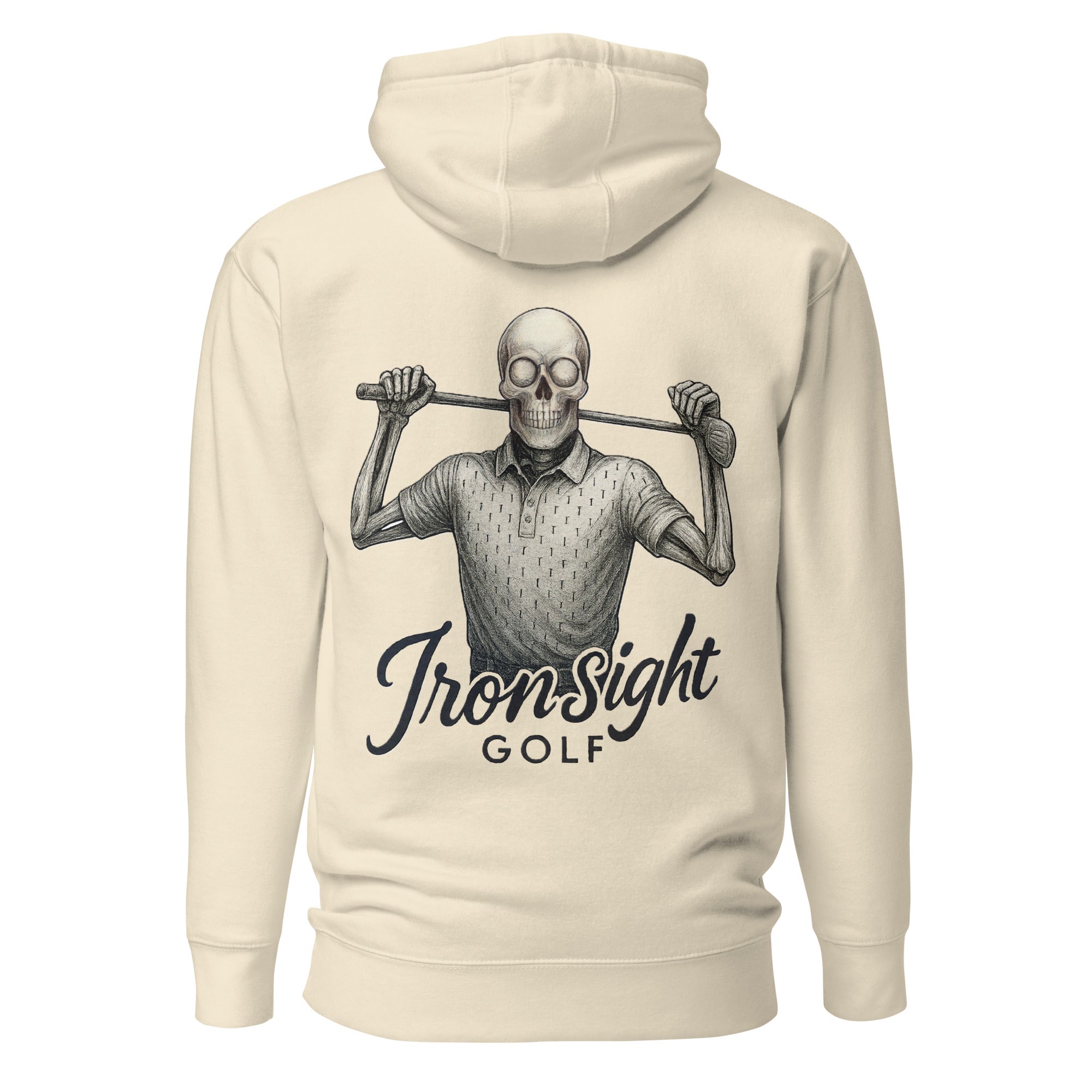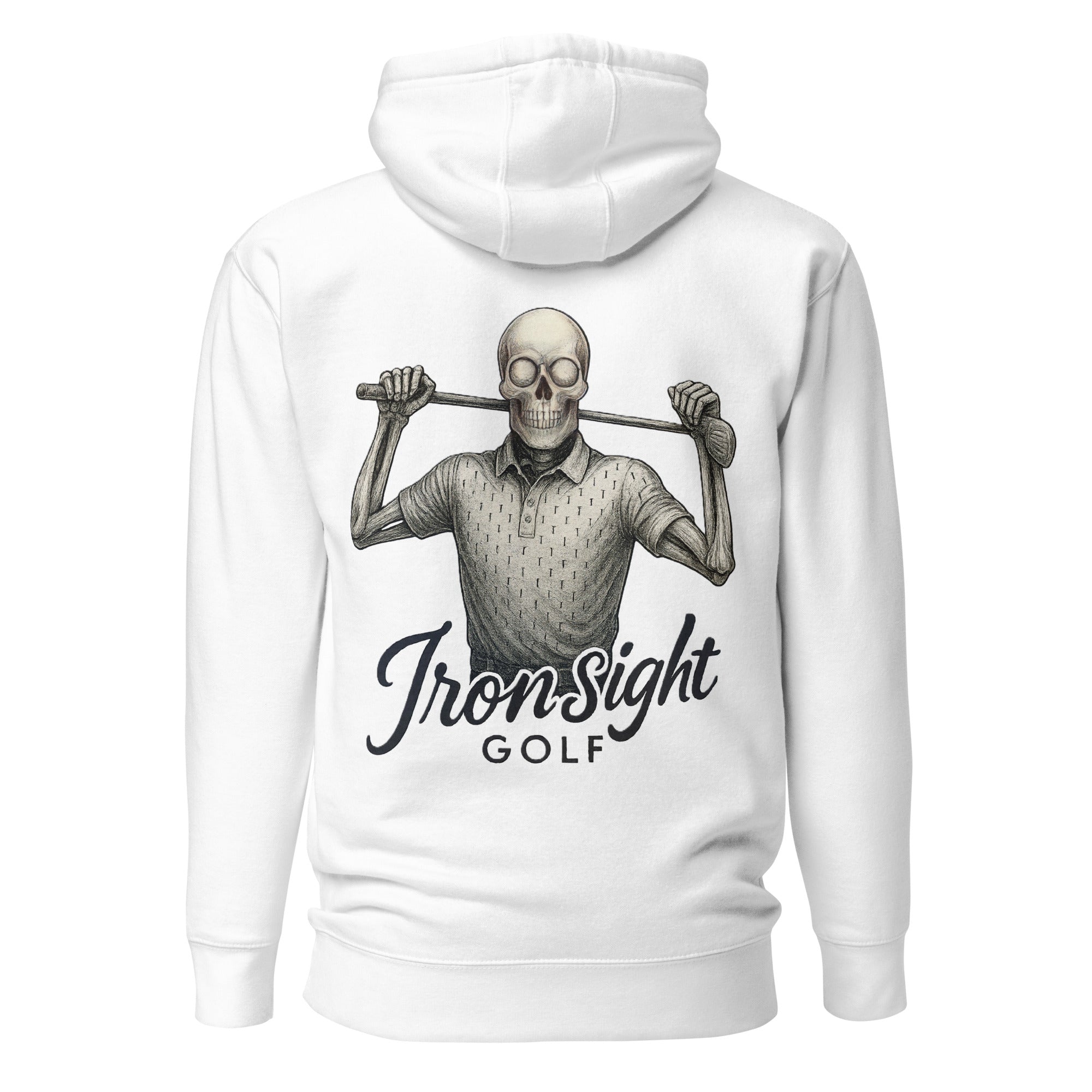 Bold. Iconic. Unforgettable. The Iron Sight Skeleton Golfer Hoodie features a striking hand-drawn skeleton golfer design that embodies both grit and style on and off the course. It’s the perfect blend of edgy golf culture and premium comfort, making it a go-to hoodie for cool mornings on the green or casual nights out.