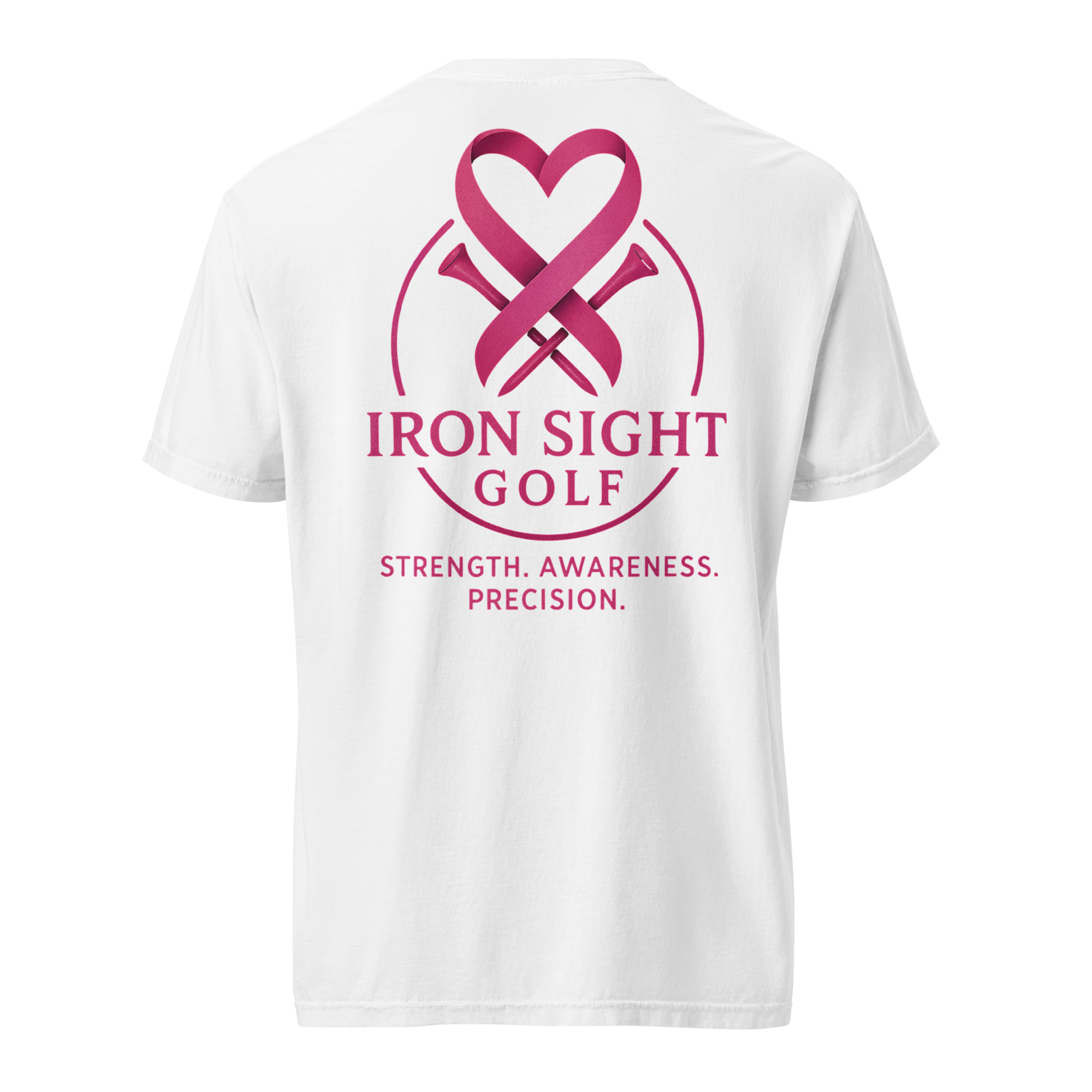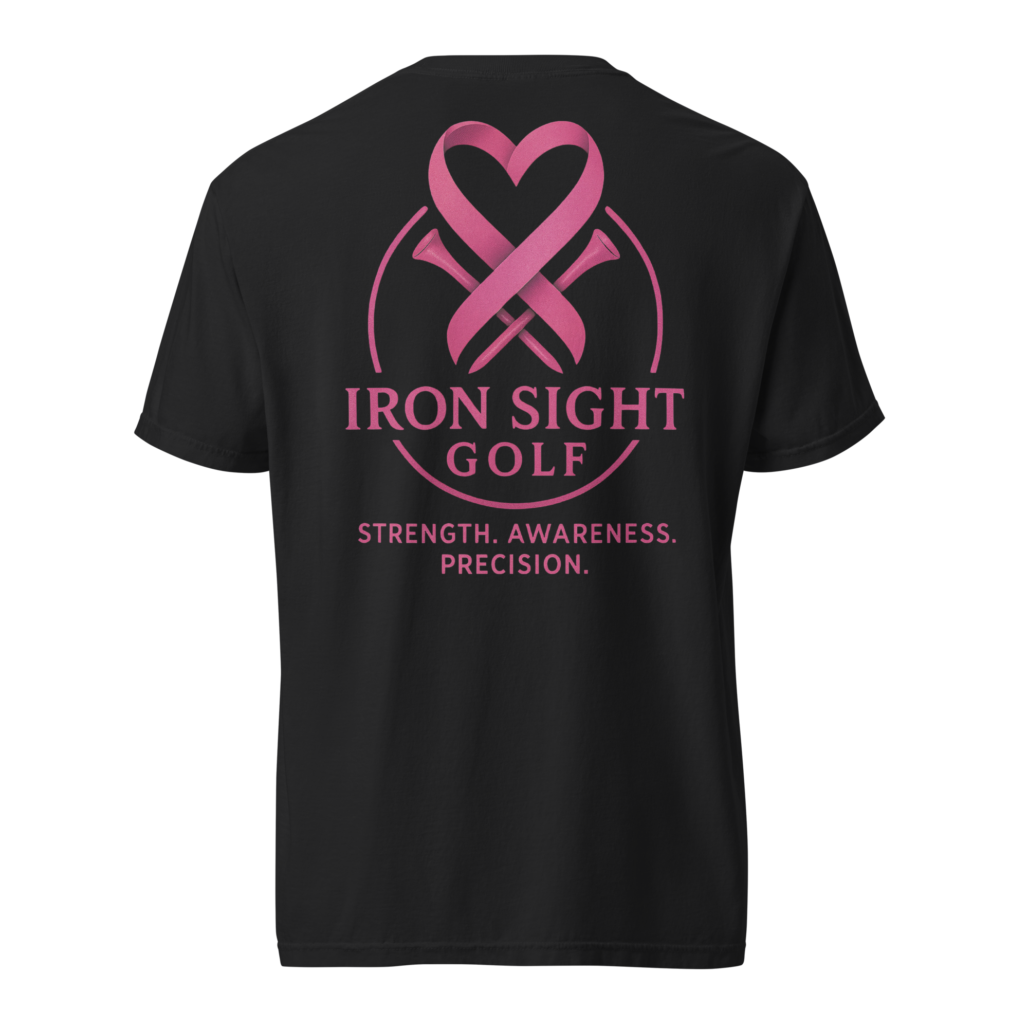 Show your support with purpose and pride in the Breast Cancer Awareness Cotton Tee. This meaningful design features the iconic pink ribbon paired with two golf tees—a symbol of unity, strength, and focus on and off the fairway. The back of the tee displays the powerful words Strength, Awareness, Precision, reflecting the same dedication and determination shared by survivors, supporters, and golfers alike.