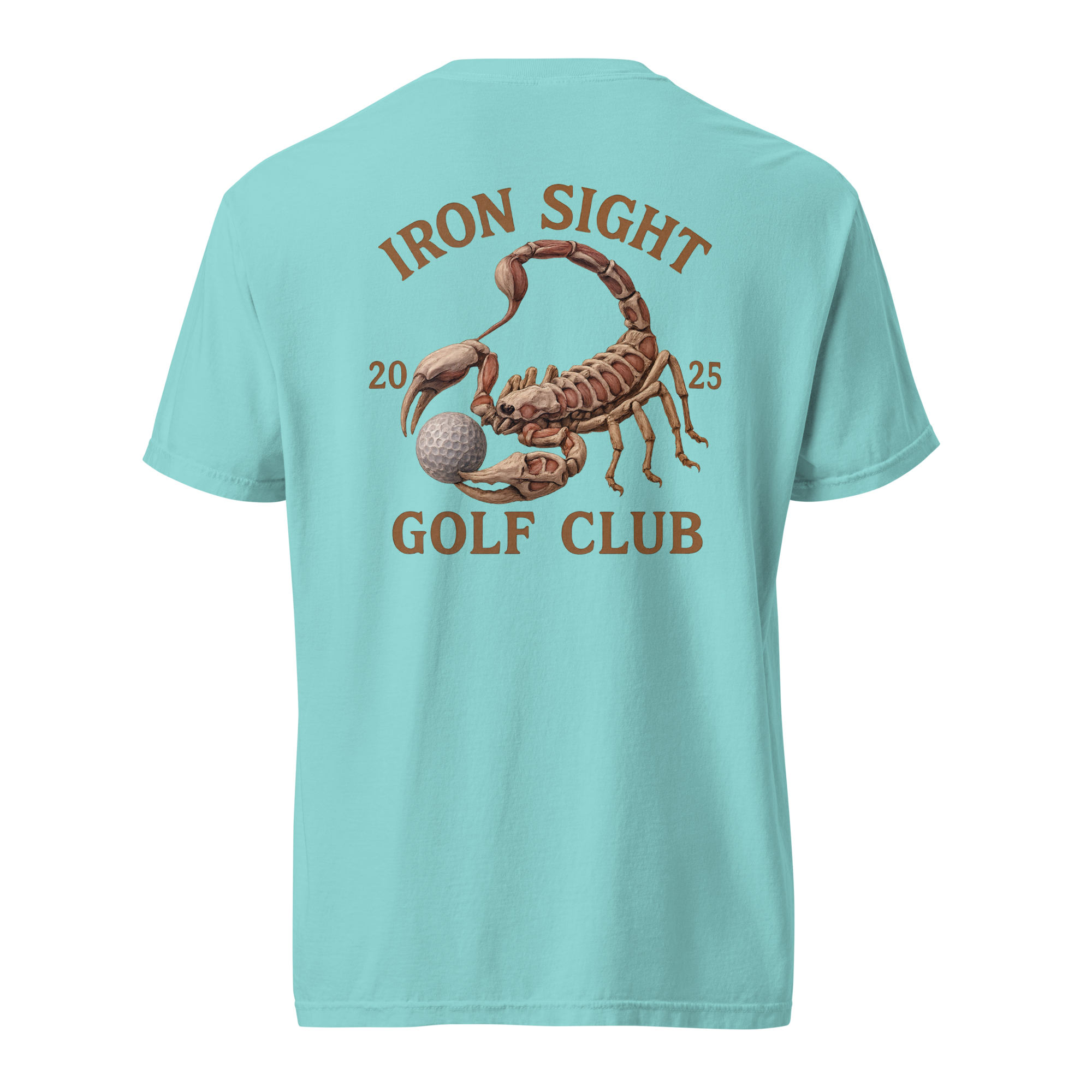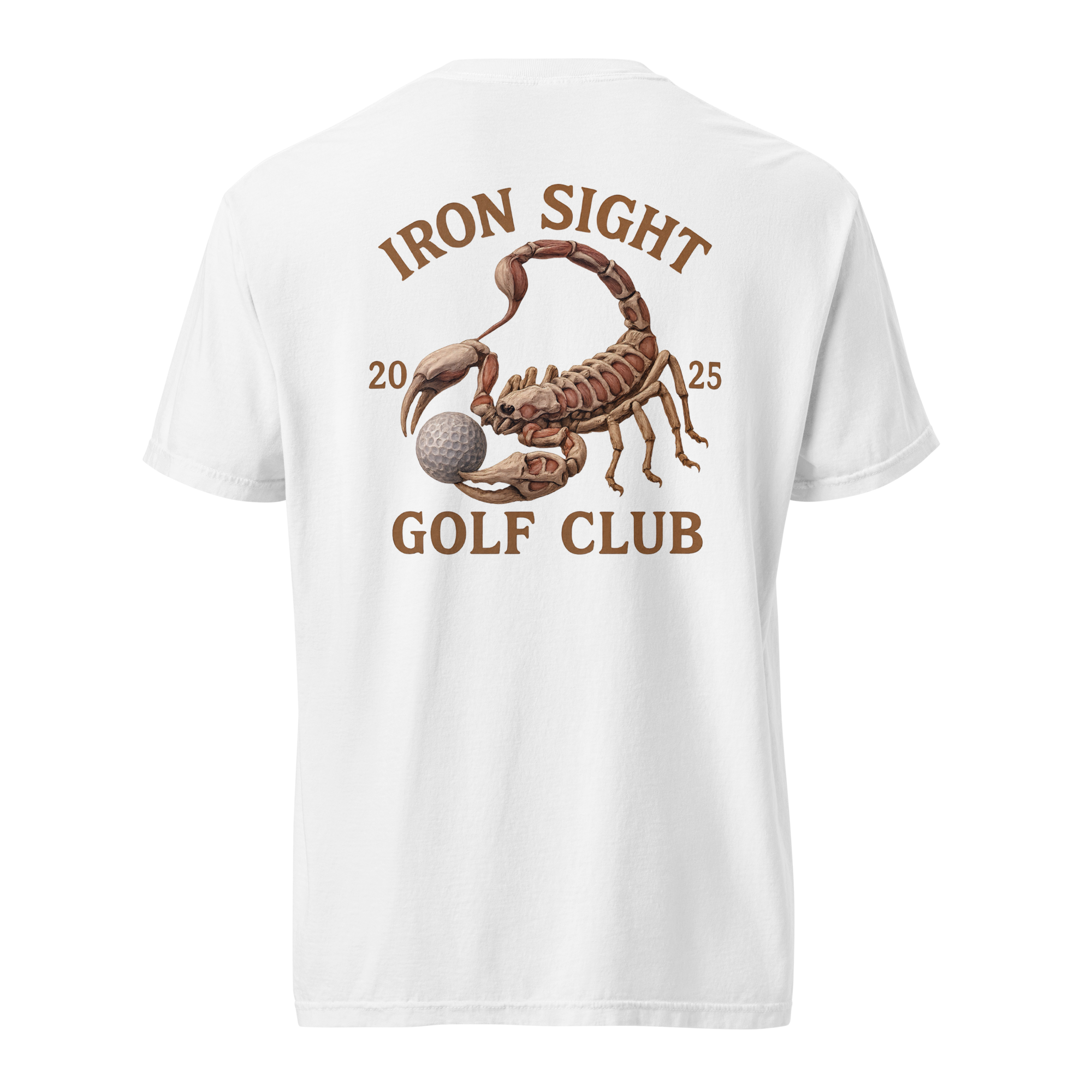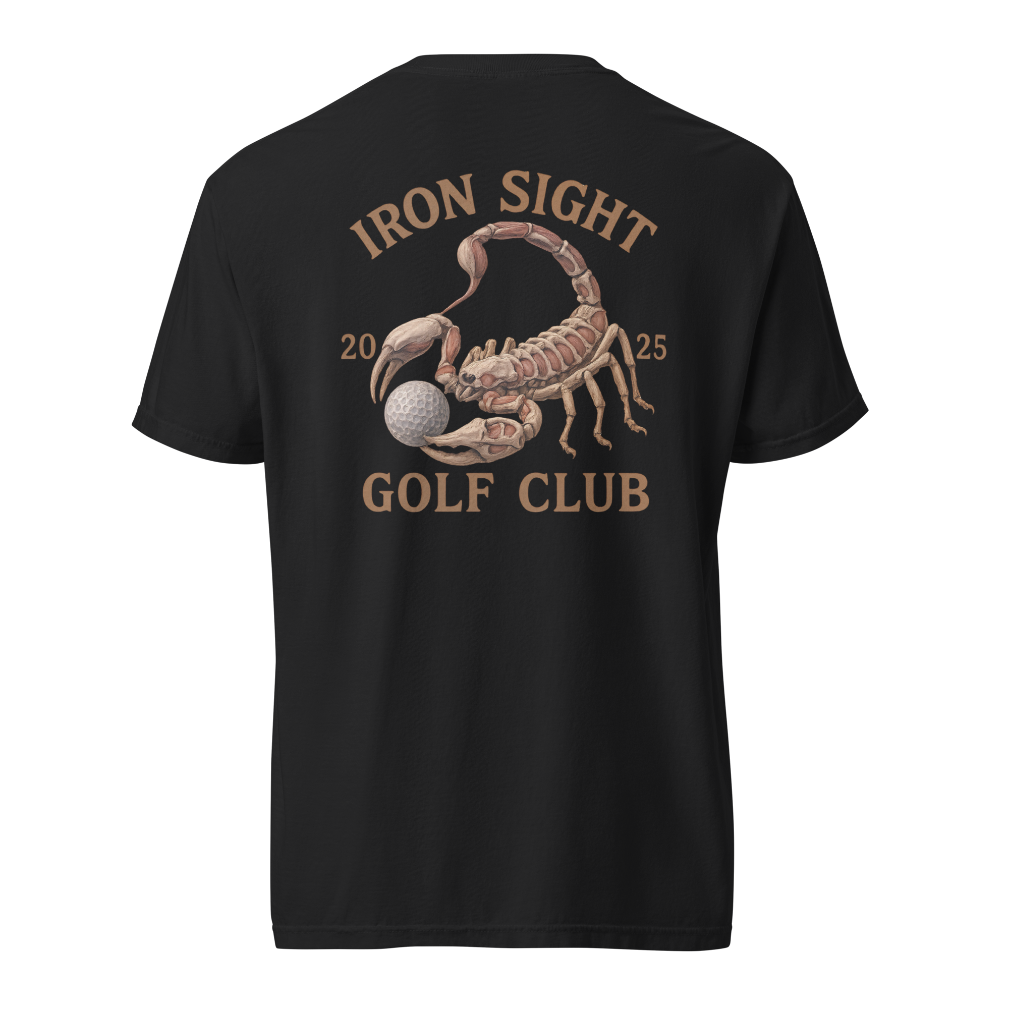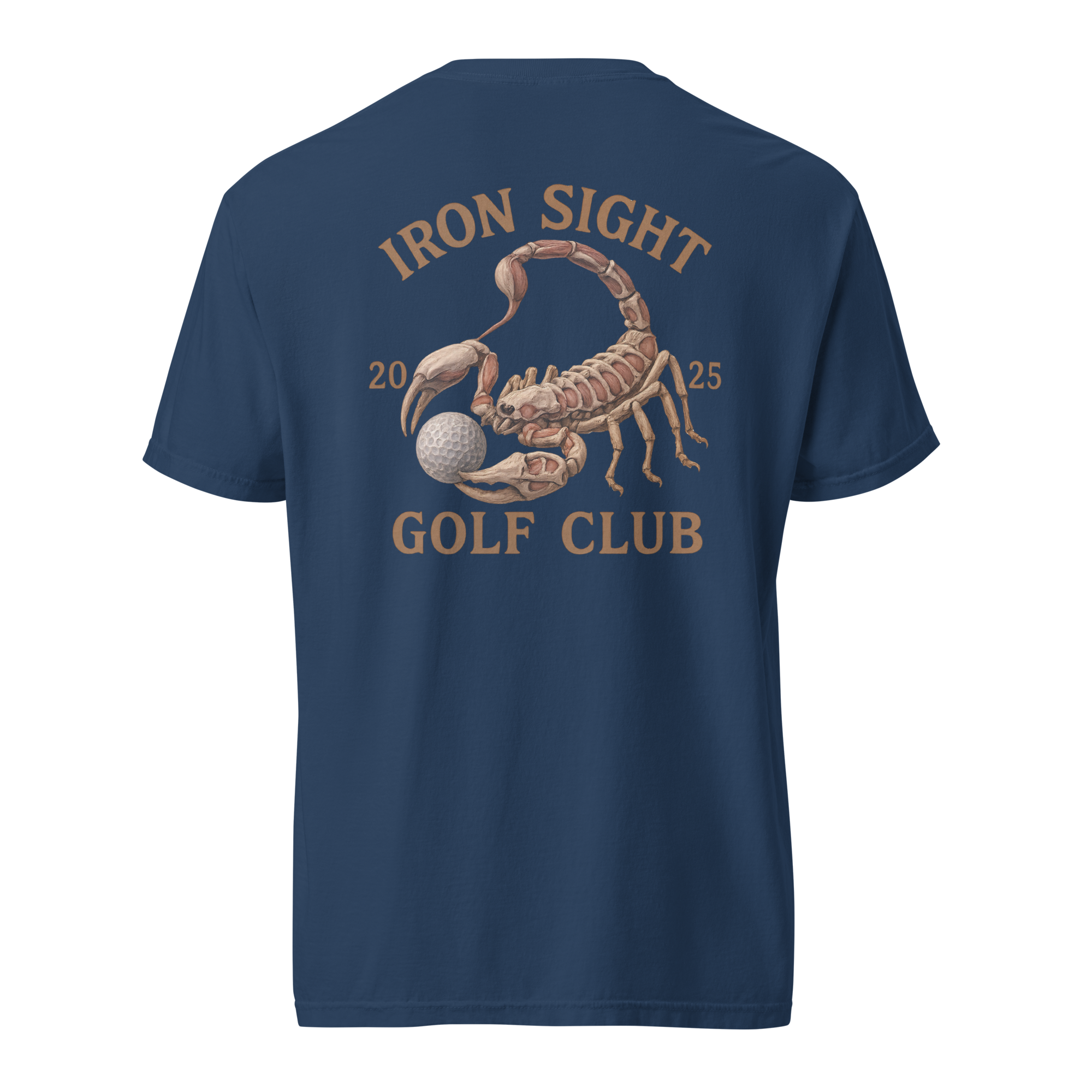 Marking the official launch of the brand, the Iron Sight Desert Golf Club Tee is a statement piece that represents toughness, precision, and pride. Featuring a bold scorpion gripping a golf ball with the words Iron Sight Golf Club 2025, this design honors the year Iron Sight was established and sets the tone for everything the brand stands for. Rugged yet refined, it’s a tee built for golfers who demand style with an edge.