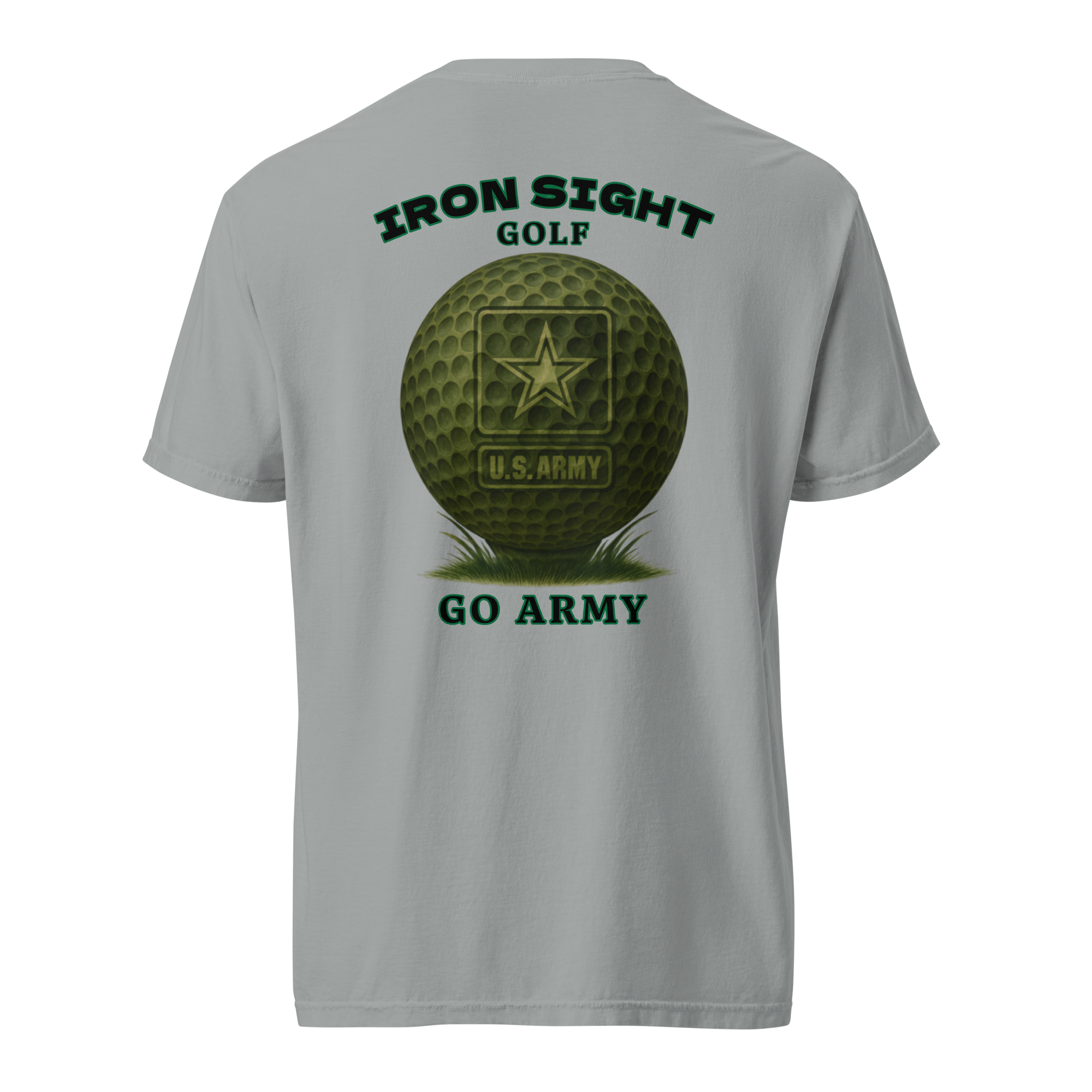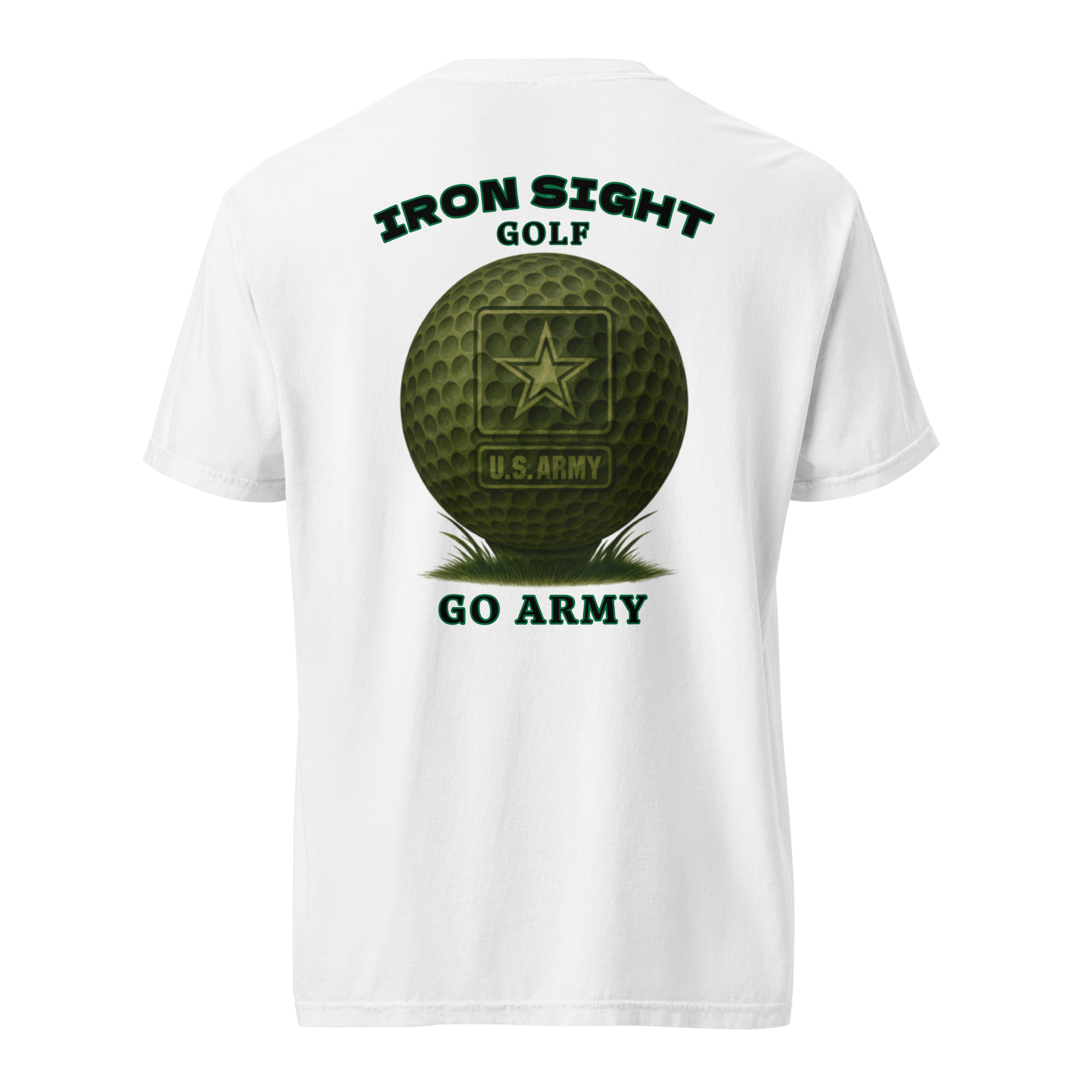 Show your pride on and off the course with the Go Army Tee. Featuring a bold army-green golf ball detailed with dimples and the official Army logo, this design is completed with the words Go Army beneath it. Crafted from premium cotton, it delivers comfort, durability, and a clean look that speaks to both service and sport.