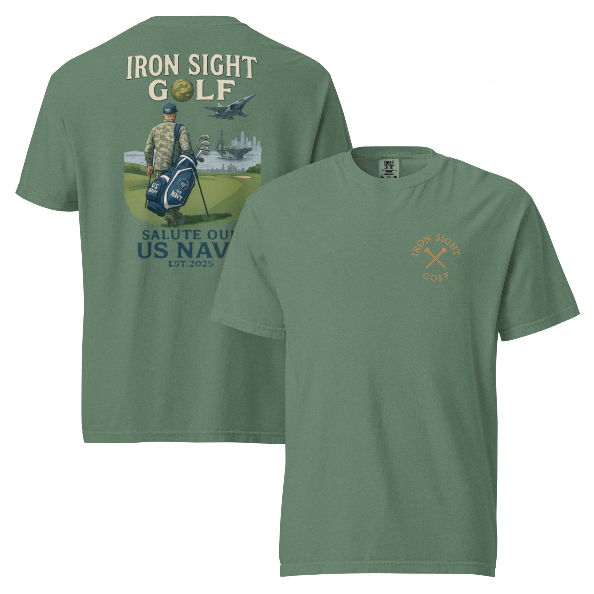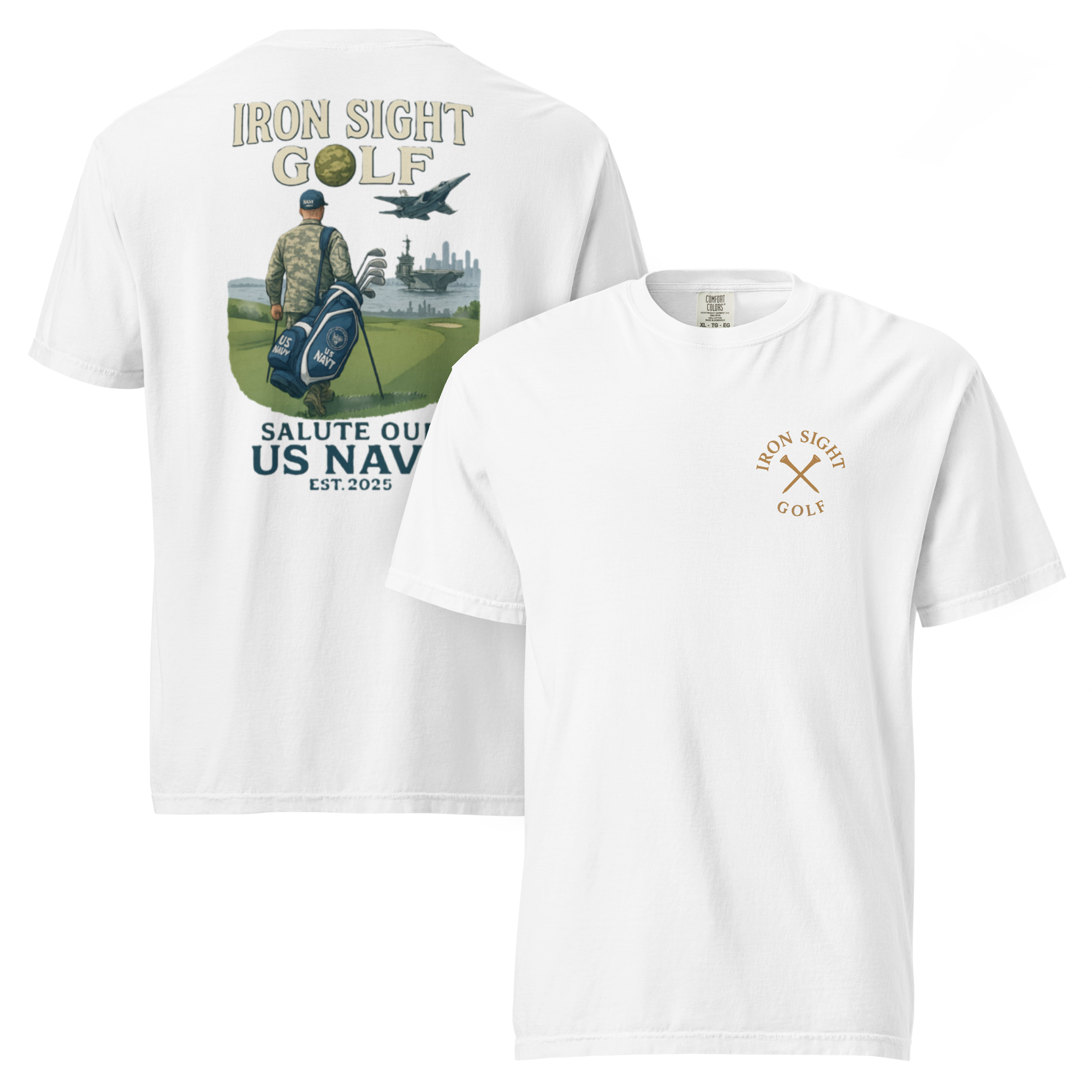 From the fairway to the sidewalk, wear your pride for the Navy and those who’ve served with the Iron Sight Golf – Navy Salute Our Veterans tee.