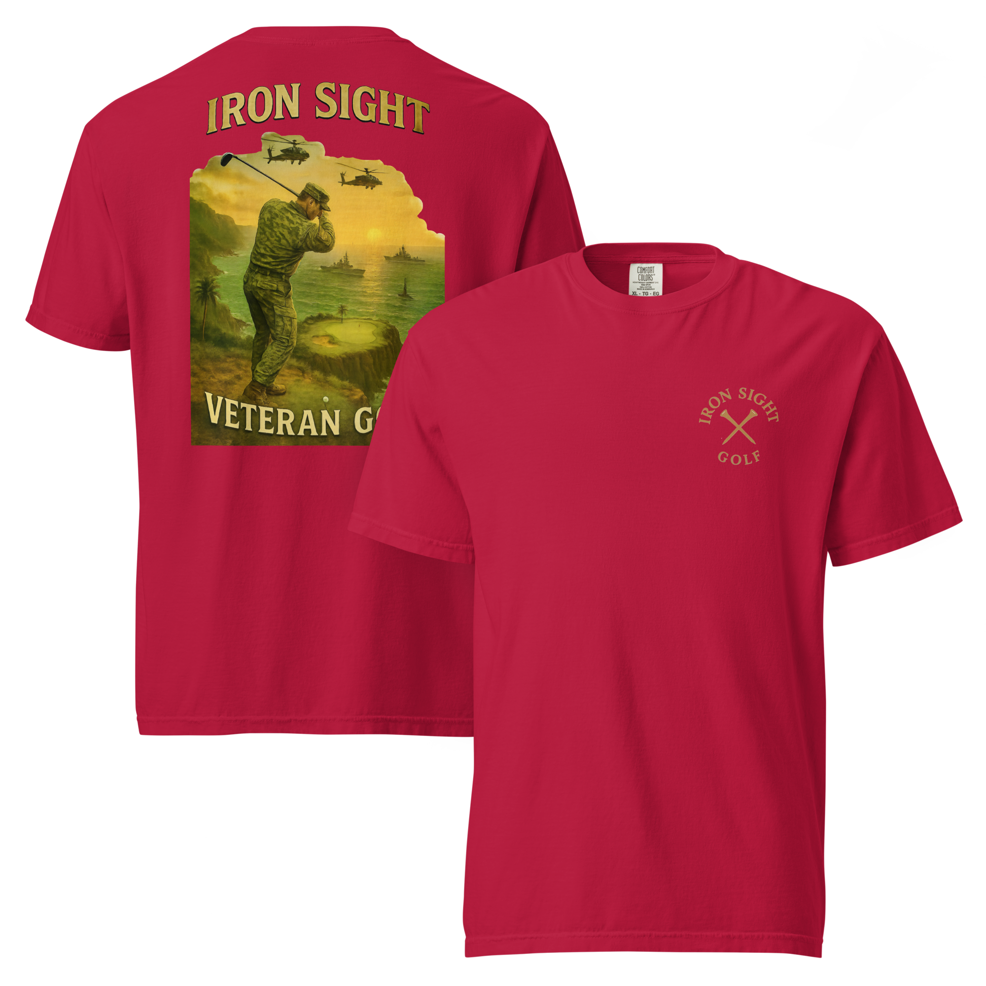 Crafted from premium cotton with a relaxed fit, this tee delivers comfort and durability—perfect for the course, casual wear, or showing pride in service. A signature piece in the Iron Sight Golf collection, it represents the unbreakable spirit of America’s veterans both on and off duty.